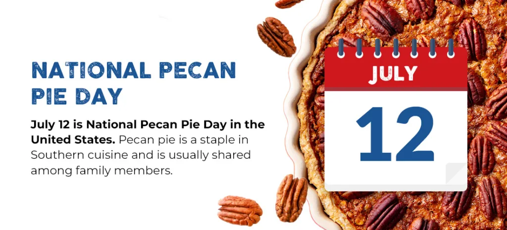 July 12 is National Pecan Pie Day in the United States. Pecan pie is a staple in Southern cuisine and is usually shared among family members or enjoyed on special holidays like Thanksgiving and Christmas.