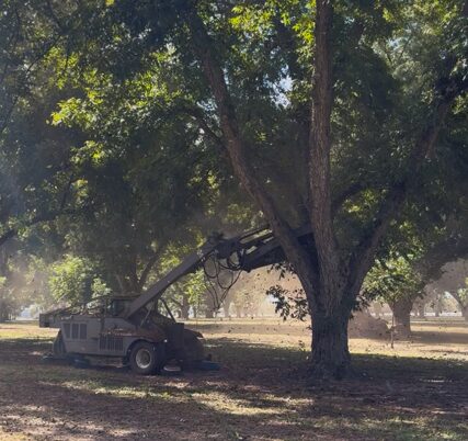 Pecan harvesting is a carefully orchestrated process — nuts need to be collected without ever damaging our trees. We use commercial harvesting machines with mechanical arms that attach to the tree limbs and gently shake them to loosen the nuts. These special tree-shaking machines make it easier to harvest more nuts at once. The shaking motion encourages nuts that are ready for harvesting to fall. Since not all pecan nuts are ready at the same time, each tree in our orchards is shaken twice per season.